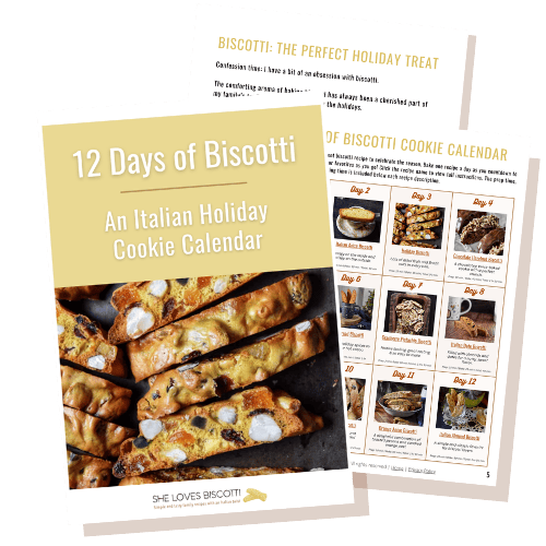 Hello there, Reader! You probably know by now that biscotti is close to my heart. It was the inspiration for my blog, She Loves Biscotti!! Biscotti is one of the classic Italian cookie recipes that can be enjoyed at breakfast with coffee, as a slightly sweet snack, or after dinner with gelato. I love making it, eating it, and sharing it with friends and family. And I love that it’s so versatile when it comes to choosing flavors… Many of my favorites are in this free 12 Days of Biscotti...